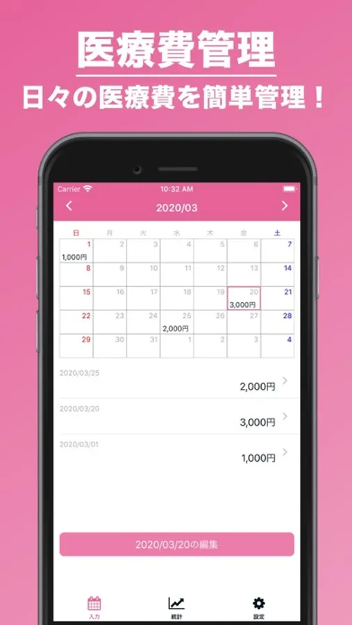 医療費管理は、日々の医療費を簡単・シンプルに管理することができるアプリです。カレンダー表式になっており、いつ病院に行ったのか、いくらかかったのか、誰がどこの病院にお世話になったのか簡単に管理できます!