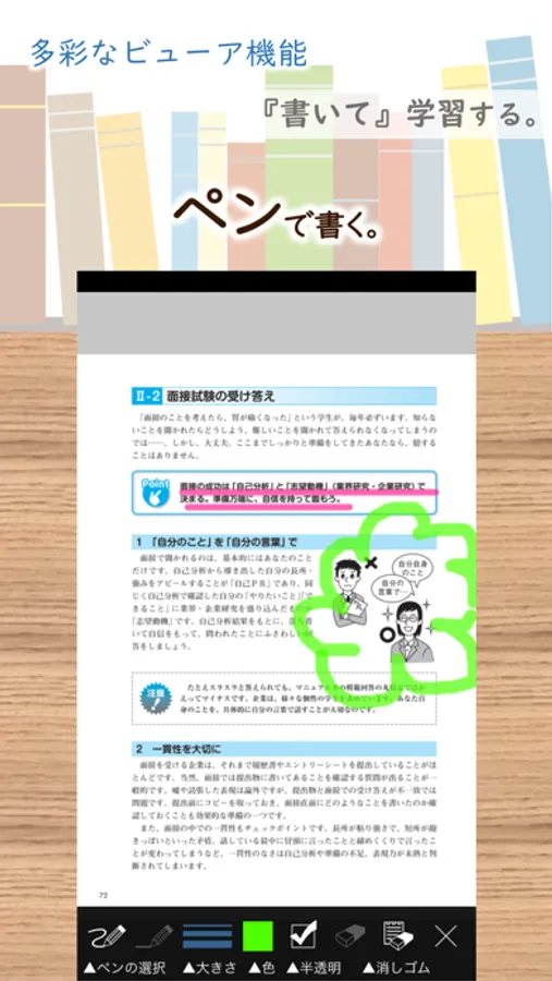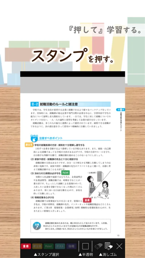 【スタンプ】「重要」「Point」「〇」「×」などの学習向けスタンプを搭載しています。