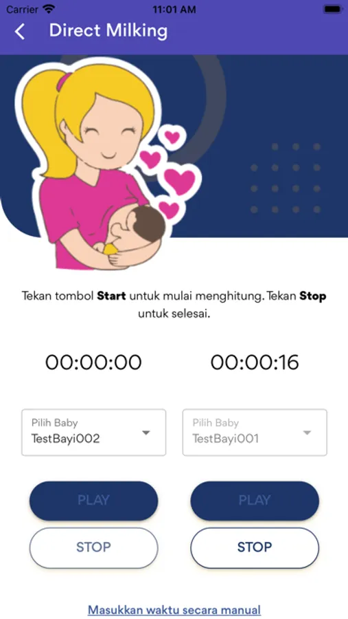 Use an automatic stopwatch or manual input to record the duration of your baby's direct breastfeeding and get the graphic report of your direct breastfeeding activity.