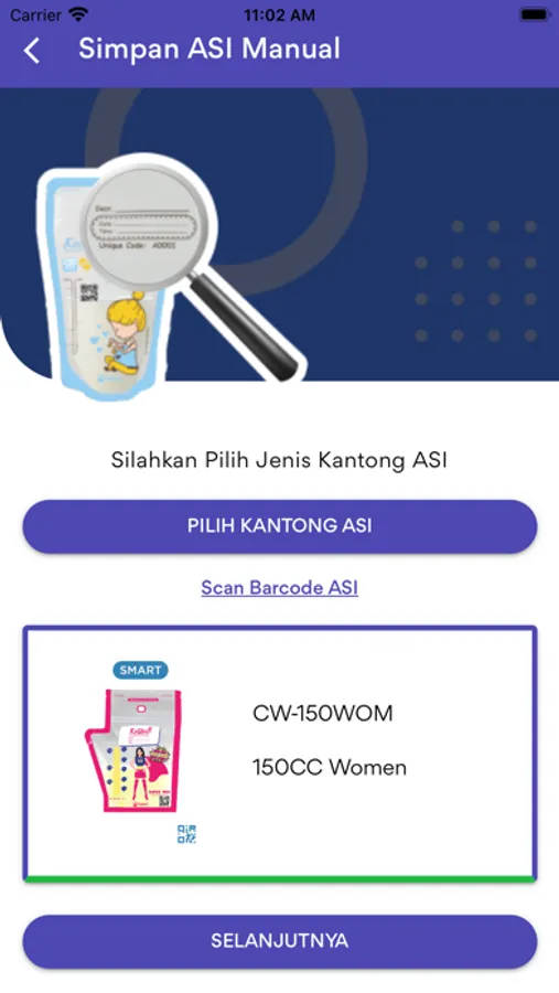 Type in the unique code on your breastmilk storage bags to GabaG aplikASI to find the history of pumping and storage dates.