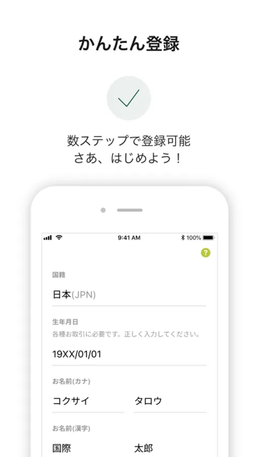 ・携帯電話番号、お名前、生年月日などのかんたんな登録ですぐにご利用いただけます。