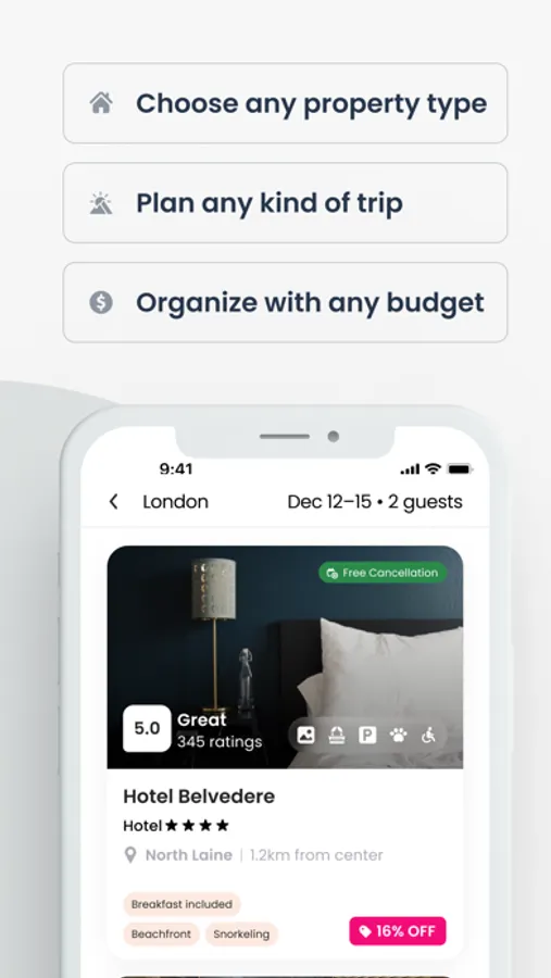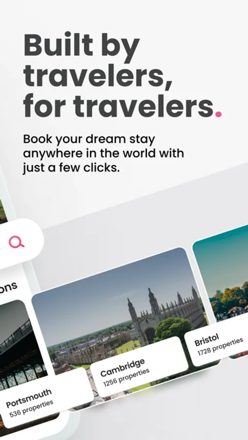 • Browse through 30+ property types at your destination of choice. Explore family- friendly vacation rentals, cozy chalets, budget-friendly hostels, hotels with super-fast Wi-Fi, luxury villas, and more!