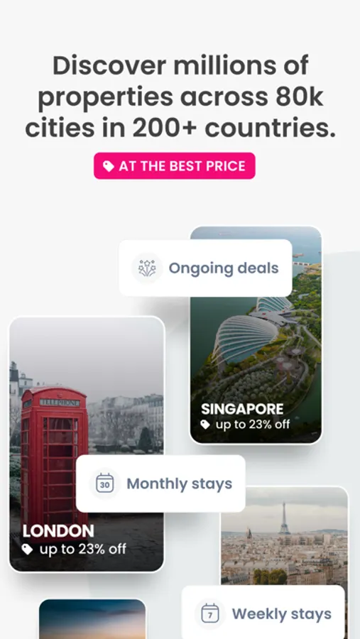 Browse millions of listings across 188+ countries and over 80k cities. With our intuitive filters, finding the perfect place to stay, with all the amenities you desire, is effortless.