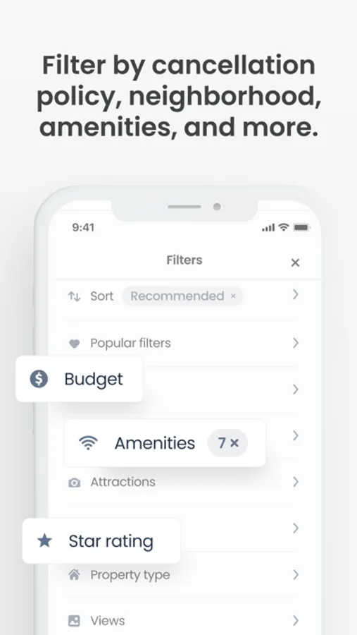 • Filter by trip type, budget, neighborhood, amenities, attractions, star rating, property type, views, things to do and more.