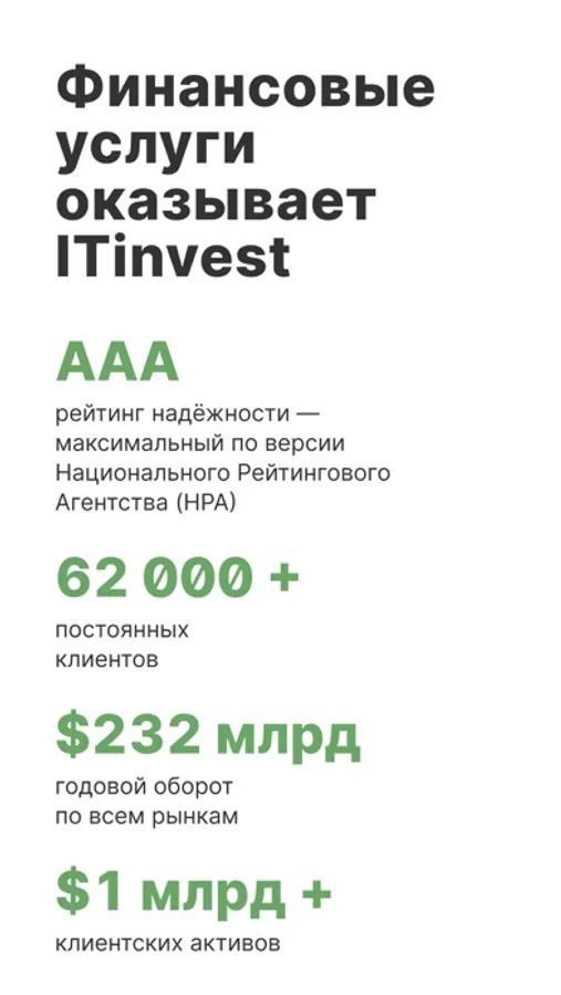 Акционерное общество «Инвестиционная компания «Ай Ти Инвест». Все права защищены законодательством. Лицензия профессионального участника рынка ценных бумаг № 045-07514-100000 от 17.03.2004 на осуществление брокерской деятельности.
