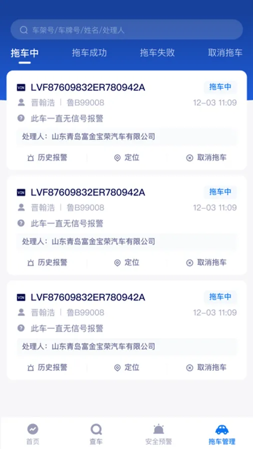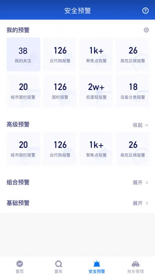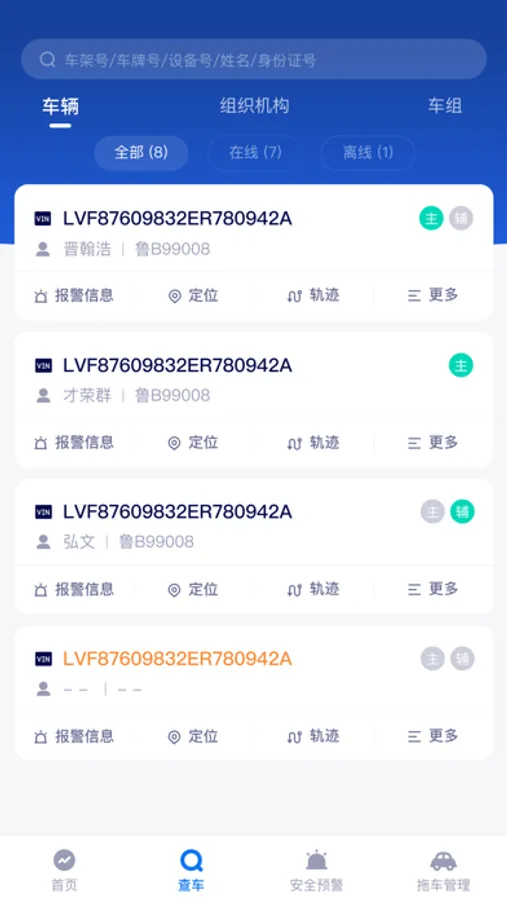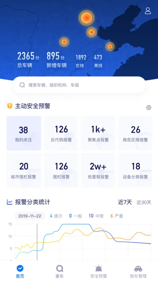 1、便捷查询汽车报警列表