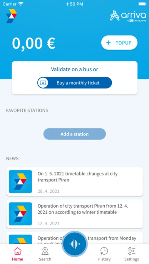 With Arriva Piran, you can pay for your ride with Piran urban buses (Arriva). You can also check your account balance, validation history and bus arrival schedules, plan your way around town, and access travel information.
