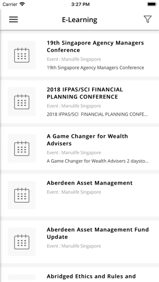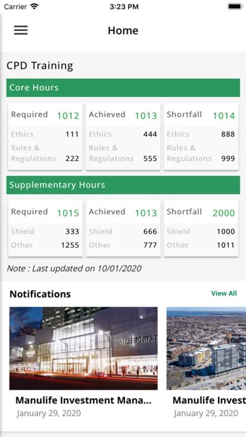 The app allows people to enrol for course, conduct e-learning and perform test assessments. They can also view their CPD hours status; ie the number of outstanding hours they need to fulfill and hours they have completed.. There will also be notification prompt for any mass event upcoming (product launch, agency kick off etc) to inform the public on the latest change.