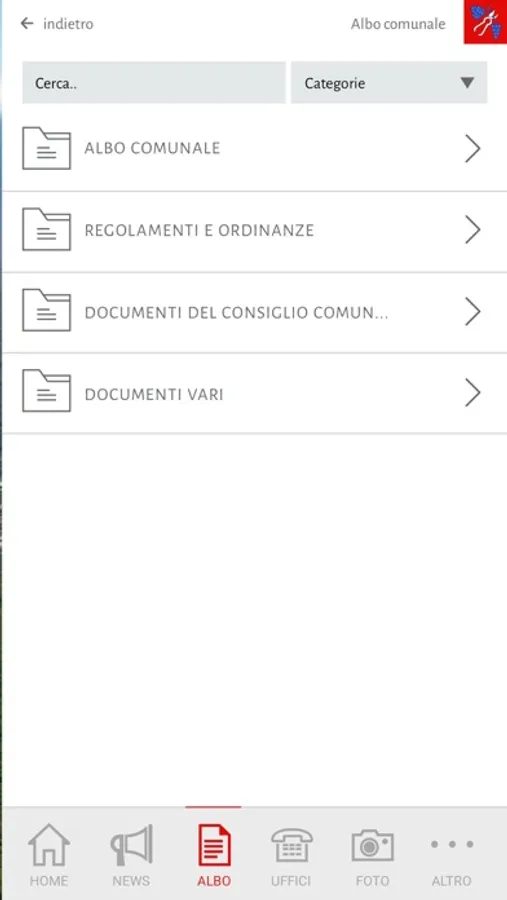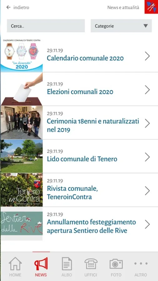 Utilizzando questa applicazione potrete consultare le seguenti sezioni: