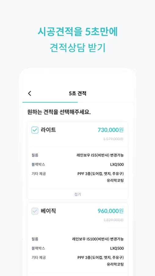 - 내 차에 맞는 차종별 정확한 시공가격 비교.