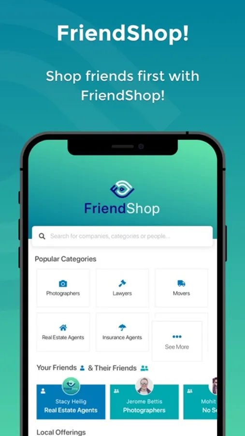 FriendShop is your one-stop shop to find a service or professional contact, sourced directly from your network.