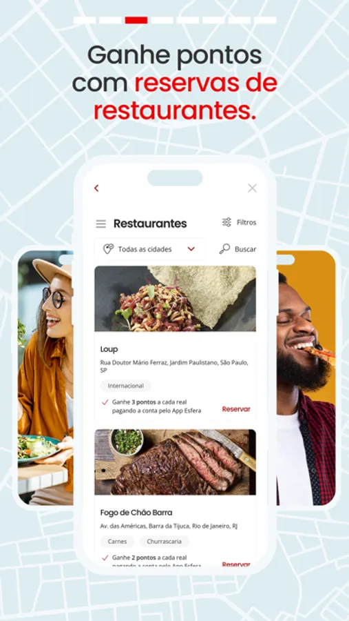Acumule pontos comprando com seu cartão de crédito Santander ou American Express e resgate passagens aéreas, produtos, shows e muito mais. Clientes BTG+ também podem transferir os pontos do cartão de crédito para usar na Esfera. Consulte os cartões elegíveis no site.