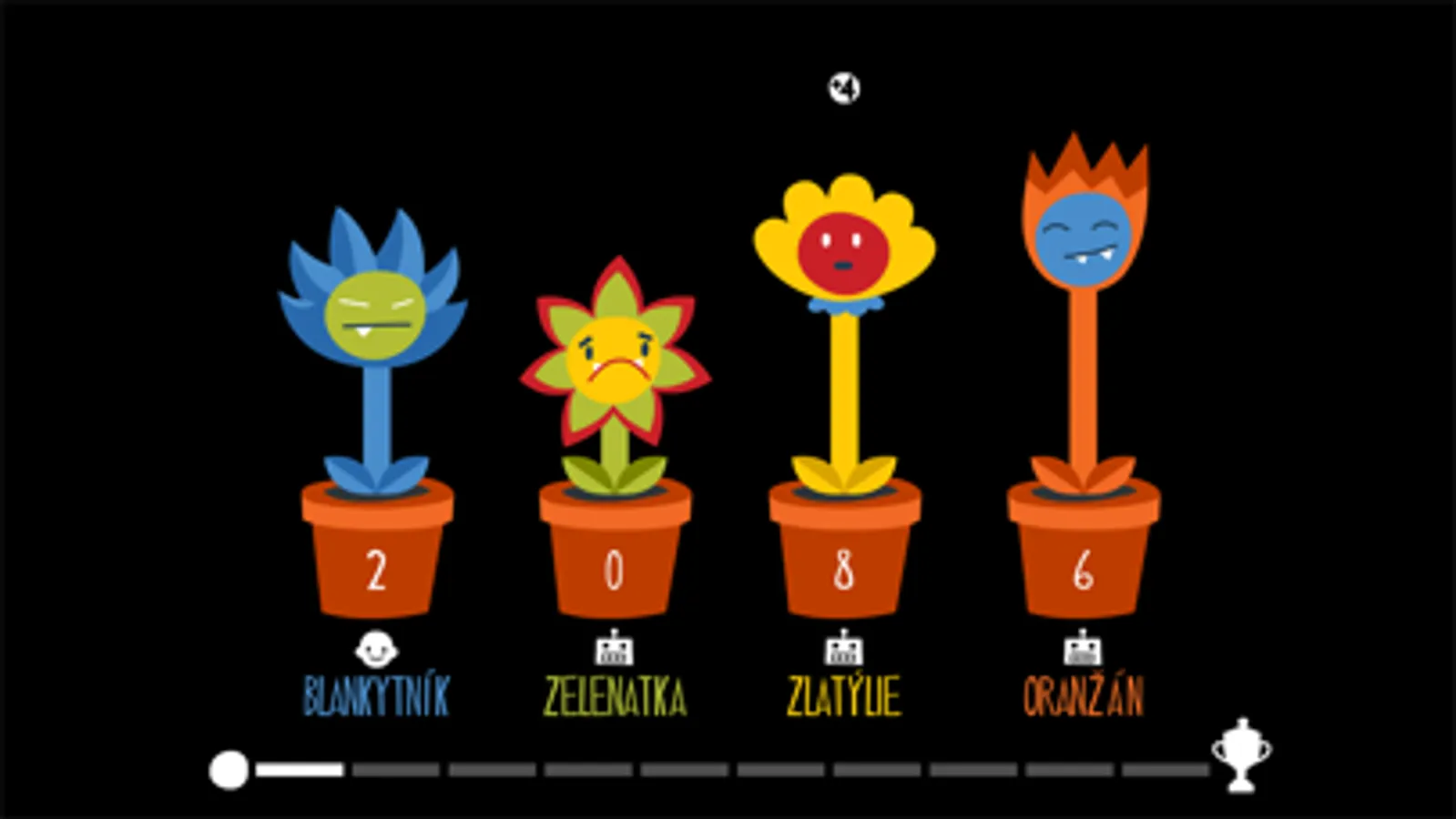 Vyber si jednu z rostlinek a začni růst. Sbírej bonusy a hlavně se vyhýbej ostatním rostlinkám na hrací ploše. Vydržíš růst déle než tví kamarádi?