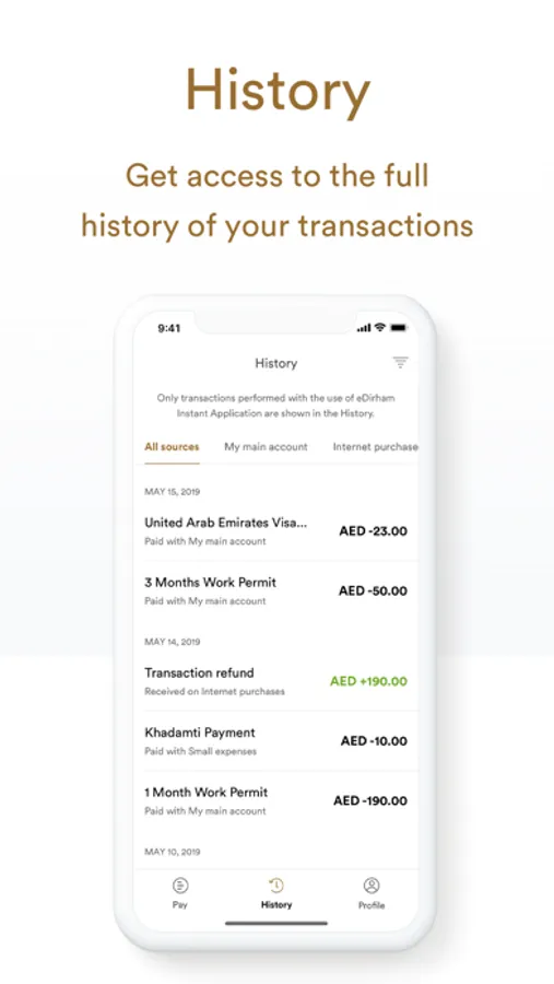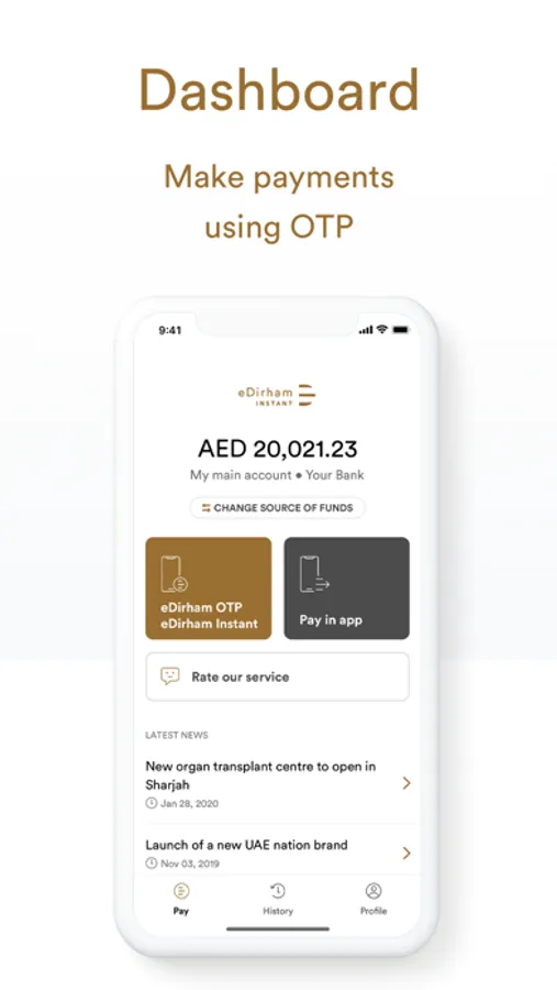 Make cardless and cashless payments via your mobile with eDirham Instant. Track your transactions and manage your spending.