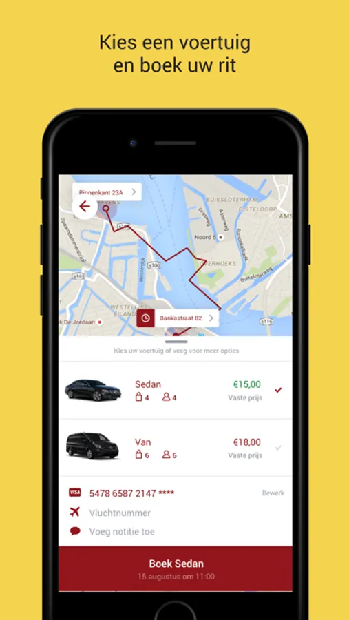 - Volg de taxi op de kaart voor precieze aankomsttijd