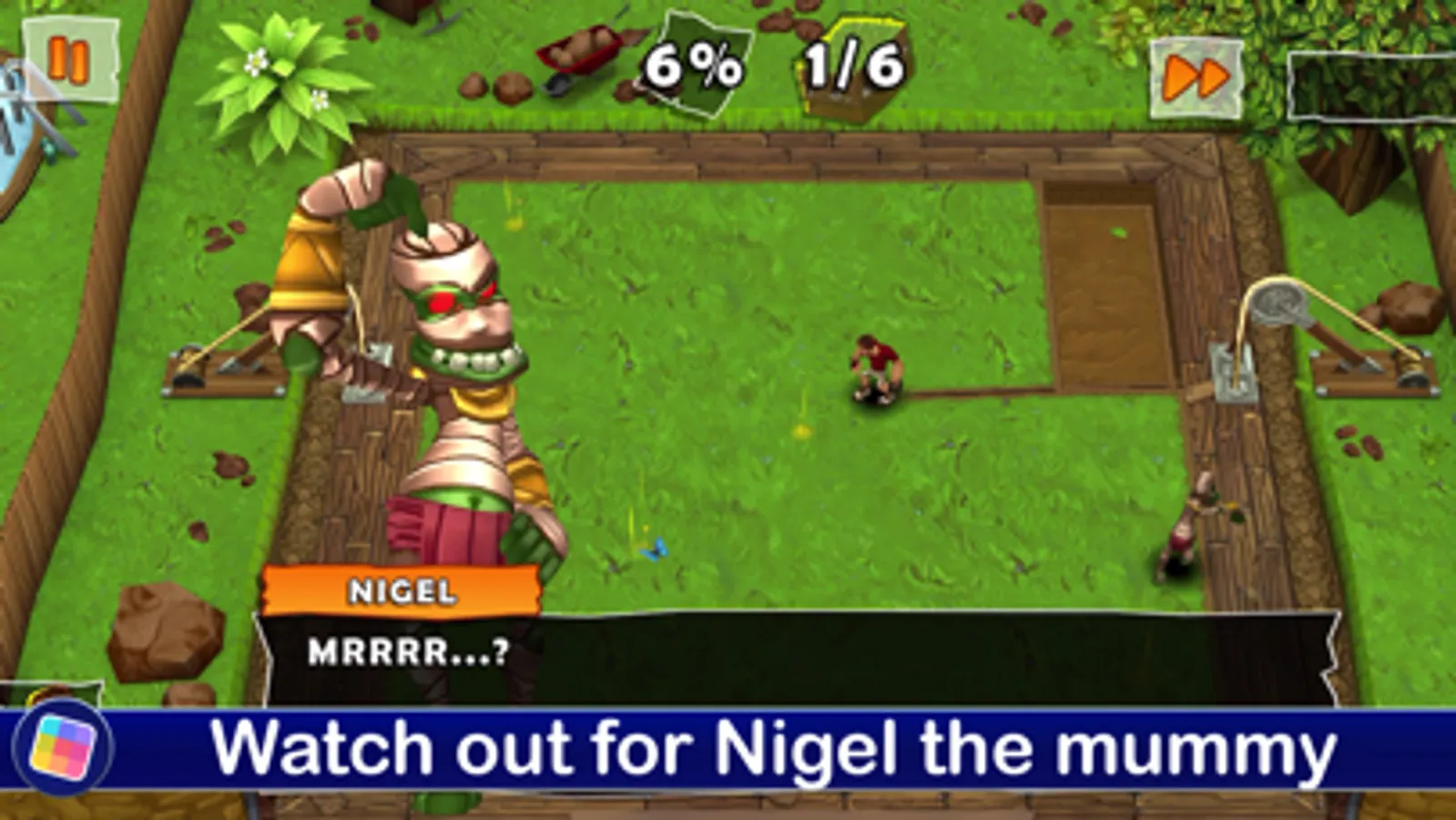 Deadly Enemies: Nigel the mummy is on patrol, and he's not in a great mood. Add in some troublesome moles, a tentacle from the deep, a few other nasty traps, and you've got quite a job ahead of you!