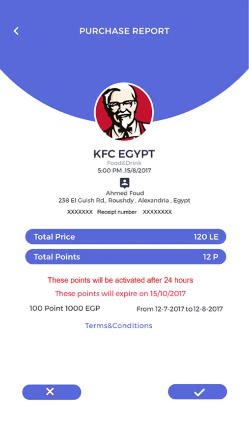 3-Earning Points - After your purchase from any of the outlets listed in this app, tap the scan icon "from the bottom bar" to scan the QR code from the merchant app or from your receipt.