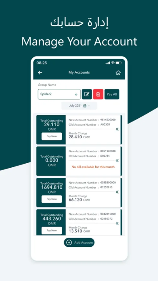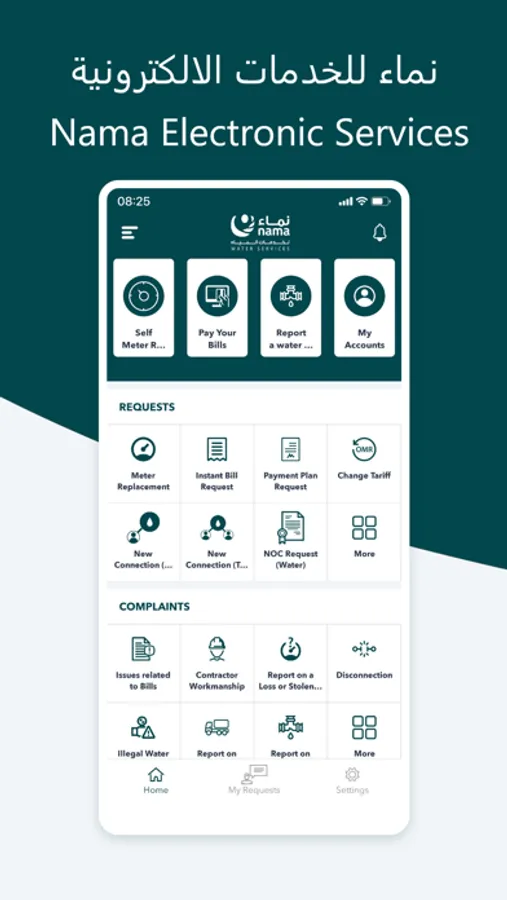 A group of e-services for Nama Water Services customers for managing water accounts and bills issued by Nama Water Services
