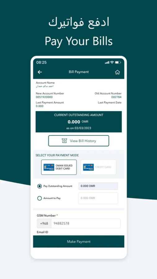 - Online payment of the bill.