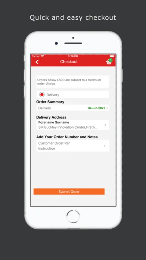 Place your order, then click and submit (partial orders can also be saved in the cloud to finish at a later date, on any compatible device)