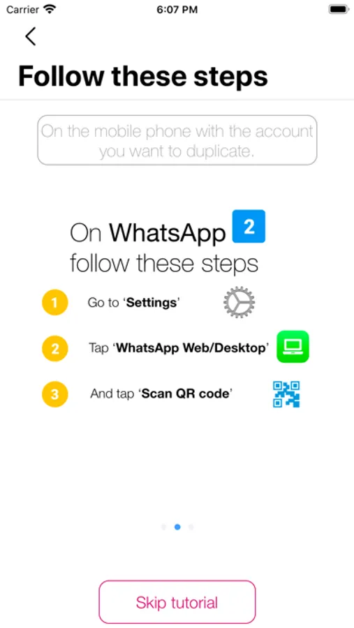 · Open WhatsAgain and follow the steps until you see a QR code on the screen.