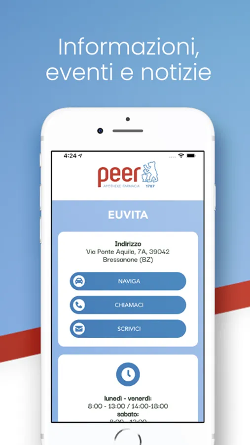 • Collegati alla pagina Facebook della Farmacia Peer per essere sempre aggiornato