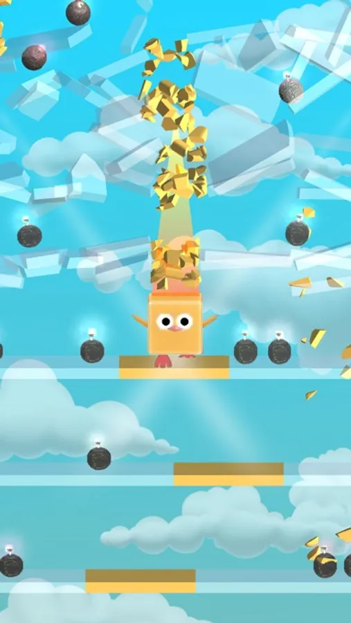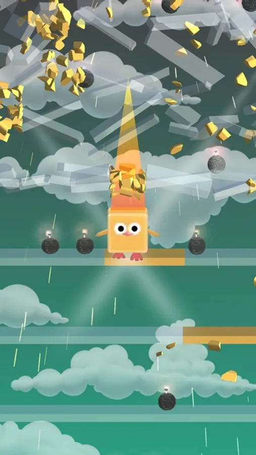 Slide the stack to let the bird break through the middle plate.