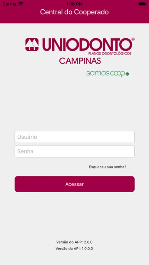 Aplicativo de uso exclusivo de Cooperados da UNIODONTO CAMPINAS.