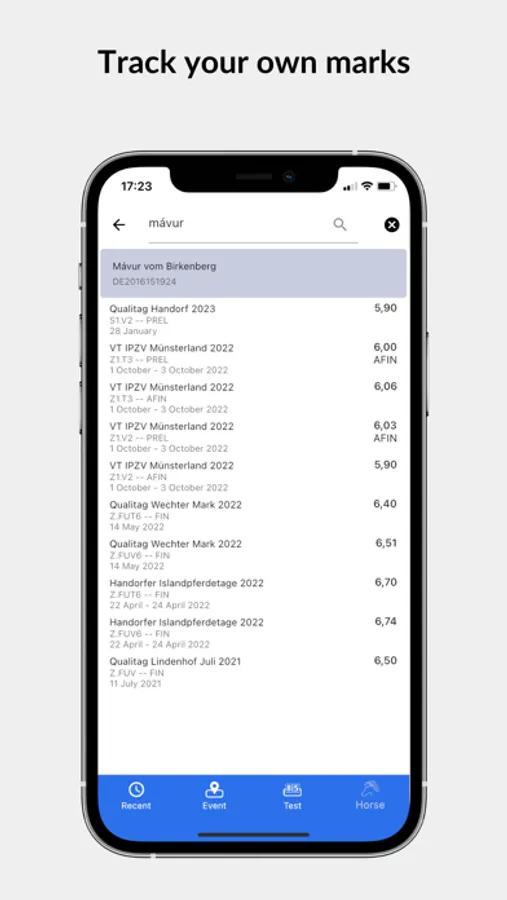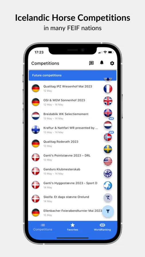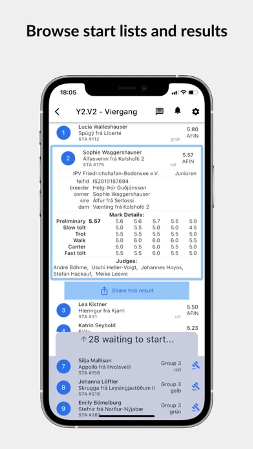 The IceTest NG App provides access to the schedule, starting lists, and results of sport competitions with Icelandic horses on a global scale.