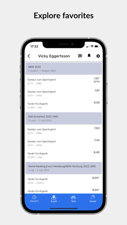 The app allows users to follow their favorite horses and riders with the option of seeing just the favorite results without having to filter through the thousands of other results.