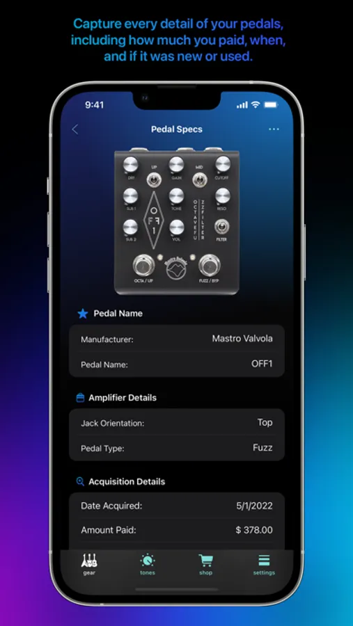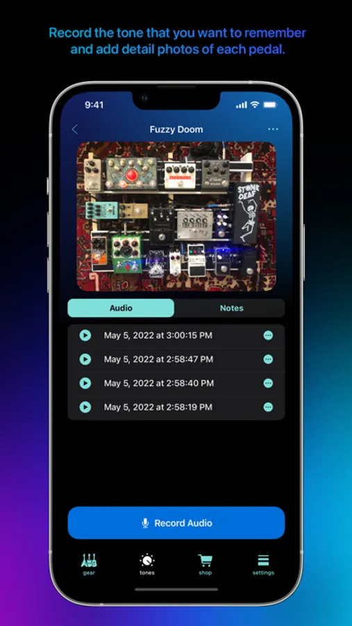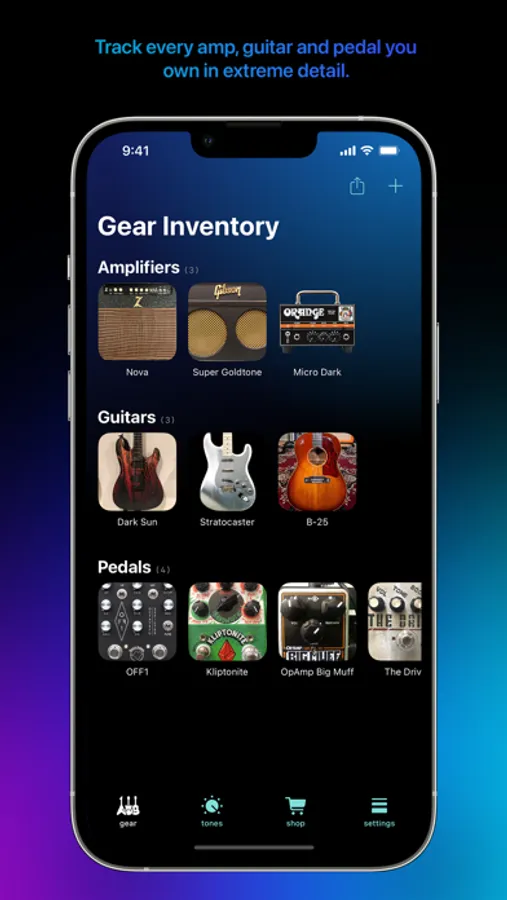 Now you can easily track the details of your gear, and your tones by how they sound and, more importantly, by how you created them.