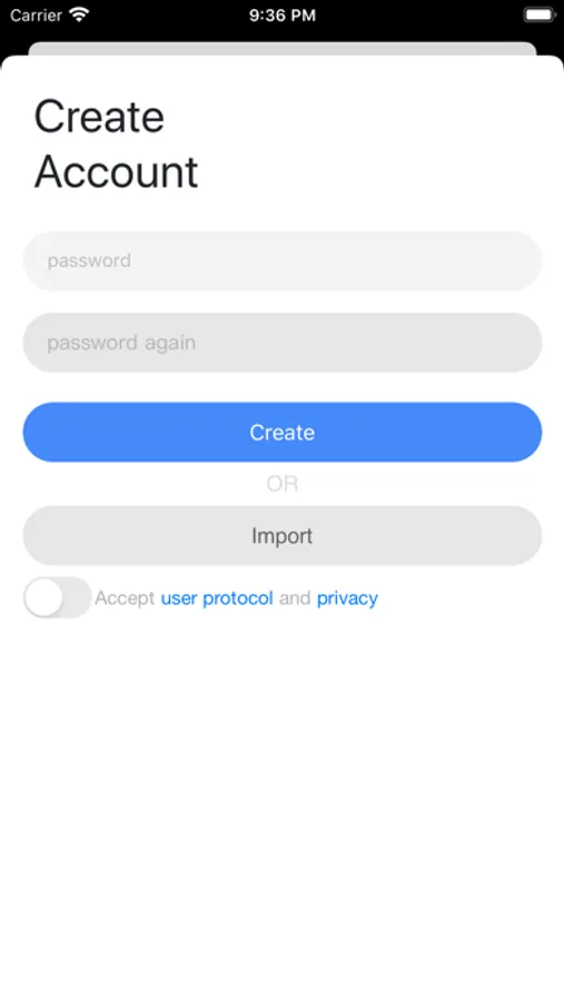 Firstly, launch the app and create a blockchain account with your password, this process will create a blockchain public and private key locally, no one know this account's private key, and it will be encrypted by the password input and save the ciphertext locally. No server will save you password and ciphertext, so it's definitely safe.