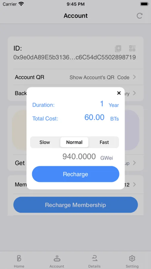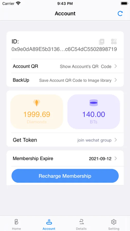 Thirdly, please apply the free BPTs and Diamonds of the trial version, the blockchain will send some BPTs and Diamonds to use. The BPTs are used by the membership of this App. Before you create an Account-Password pair on the blockchain, you must recharge your membership firstly. It costs 2 BPTs per month, It authorizes you to operate on a blockchain. But the operation on the blockchain is not free, then it requires diamonds to reward the miner of the blockchain. So the Diamonds are used to reward them, and their duty is to make sure the blockchain be safe and never lost data. It costs about 4 Diamonds per operation, but it is not a constant value, it depends on the difficulty of the mining process and the price of gas used to operate blockchain.