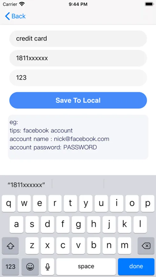 Secondly, because of no server to save your private information, so please export your ciphered text as a QR code image to somewhere to backup your account. if you lose it or delete the app without the backup of this account, no one can find your account and password. It totally decentralized application, fully block chain, completely safe, even you yourself can't steal this when you lost this ciphered text or forget the password to decrypt this ciphered text, so be careful about this QR code image. Also, don't be worried too much about this QR code image, even someone steal this image, he can't decrypt your account expect he also gets your password which is no place to be stored. The password only is stored in your brain, so don't forget the password of this application. Do you know the story about someone who lost his bitcoin account?
