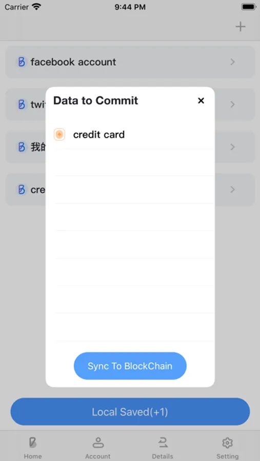 Fourthly, after save you saving Account-Password encrypted data to the blockchain , you can synchronize these data anytime and anywhere, even you can see them on some blockchain explorer such as:etherscan.io but these data is encrypted by your private key. So before you look at the Account-Password value, you should decrypt your blockchain account and then the app can use your private key to decrypt the data. For the sake of safety, the private key must be removed from memory sometimes later, the default duration of the private key opened is 5 minutes, you can change it in the setting tab page.