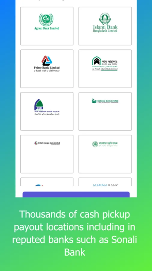 -Your receiver can collect funds from any participating spotCash! cash pickup partner bank in Bangladesh