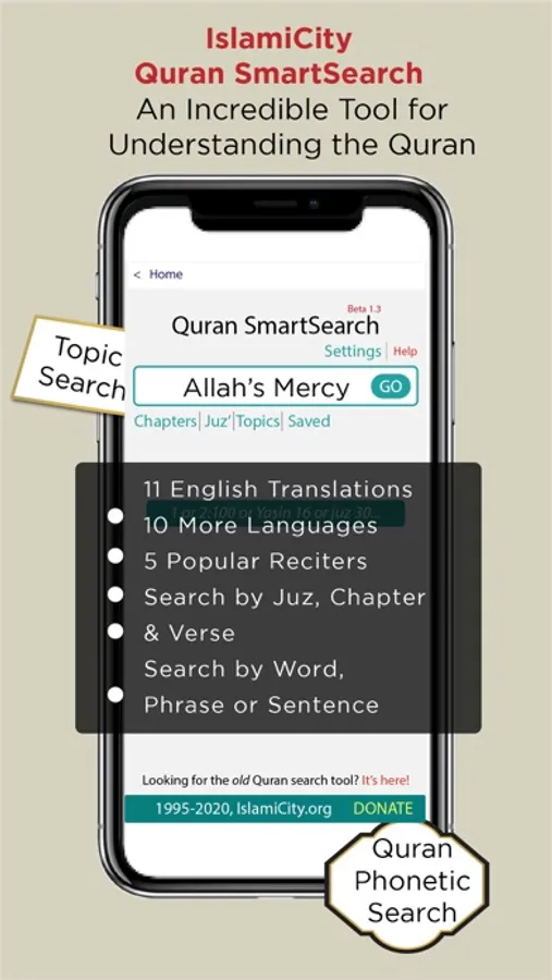 منذ عام ١٩٩٥ ونحن نعمل على نشر المعلومات والخدمات الإسلامية والتوعية الدينية. IslamiCity من أوائل من أطلق الخدمات الإسلامية عبر الويب, والموقع مصدر موثوق من أكثر من 225 مليون زائر من أنحاء العالم. لا نتلقى دعما خارجيا للحفاظ على الاستقلاليةونعتمد على التبرعات الفردية فقط. هذا التطبيق المجاني لا يحتوي على الإعلانات.