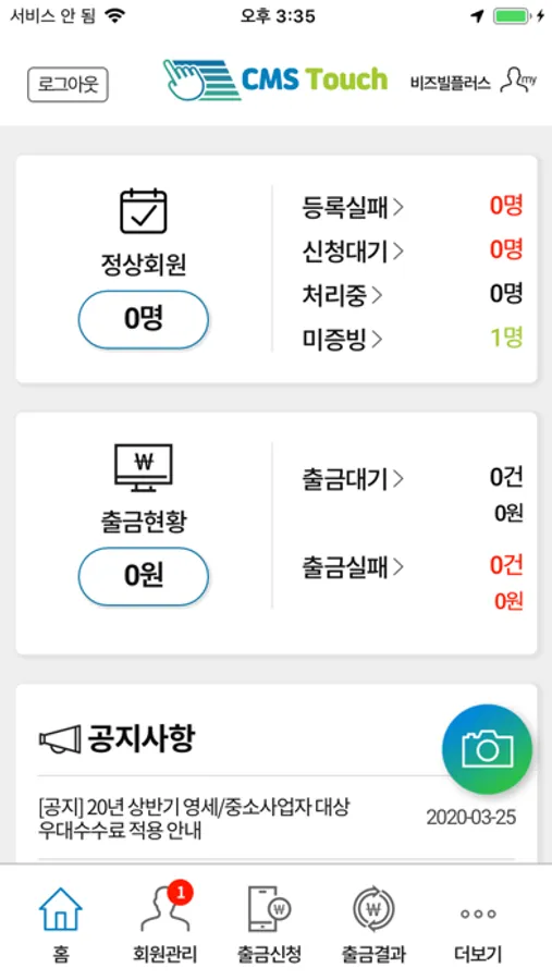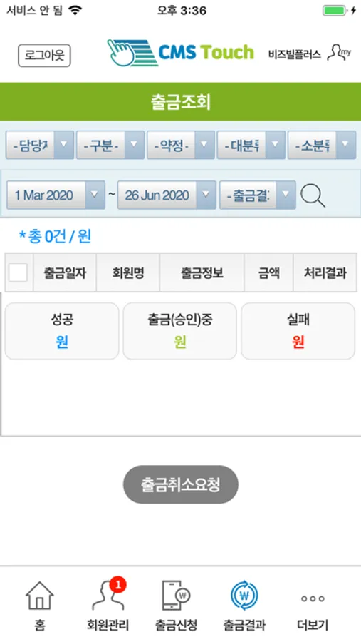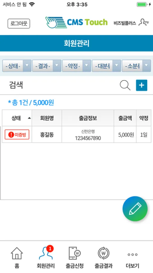 사용자가 사무실 PC 이외 모바일 이용 어디서나 회원등록,출금요청, 결과를 이용하는 앱 서비스입니다.