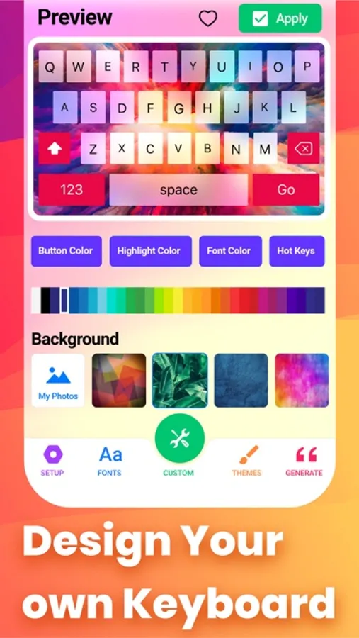 - Custom Keyboard - design your own keyboard