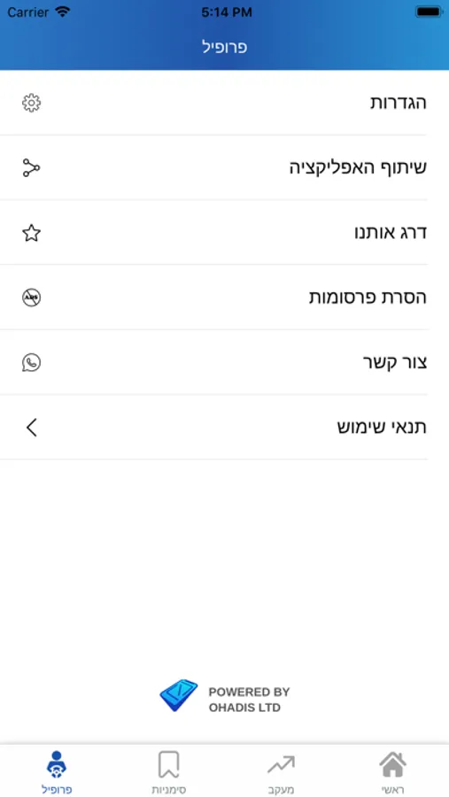 עמוד הפרופיל מאפשר לכם לשנות את סוג הרשיון שבחרתם. אם תרצו ללמוד סוג רשיון אחר כל שעליכם לעשות הוא להכנס לפרופיל ולבחור את הרשיון הרצוי. האפליקציה מיד תתאים את מאגר השאלות לסוג החדש שנבחר.