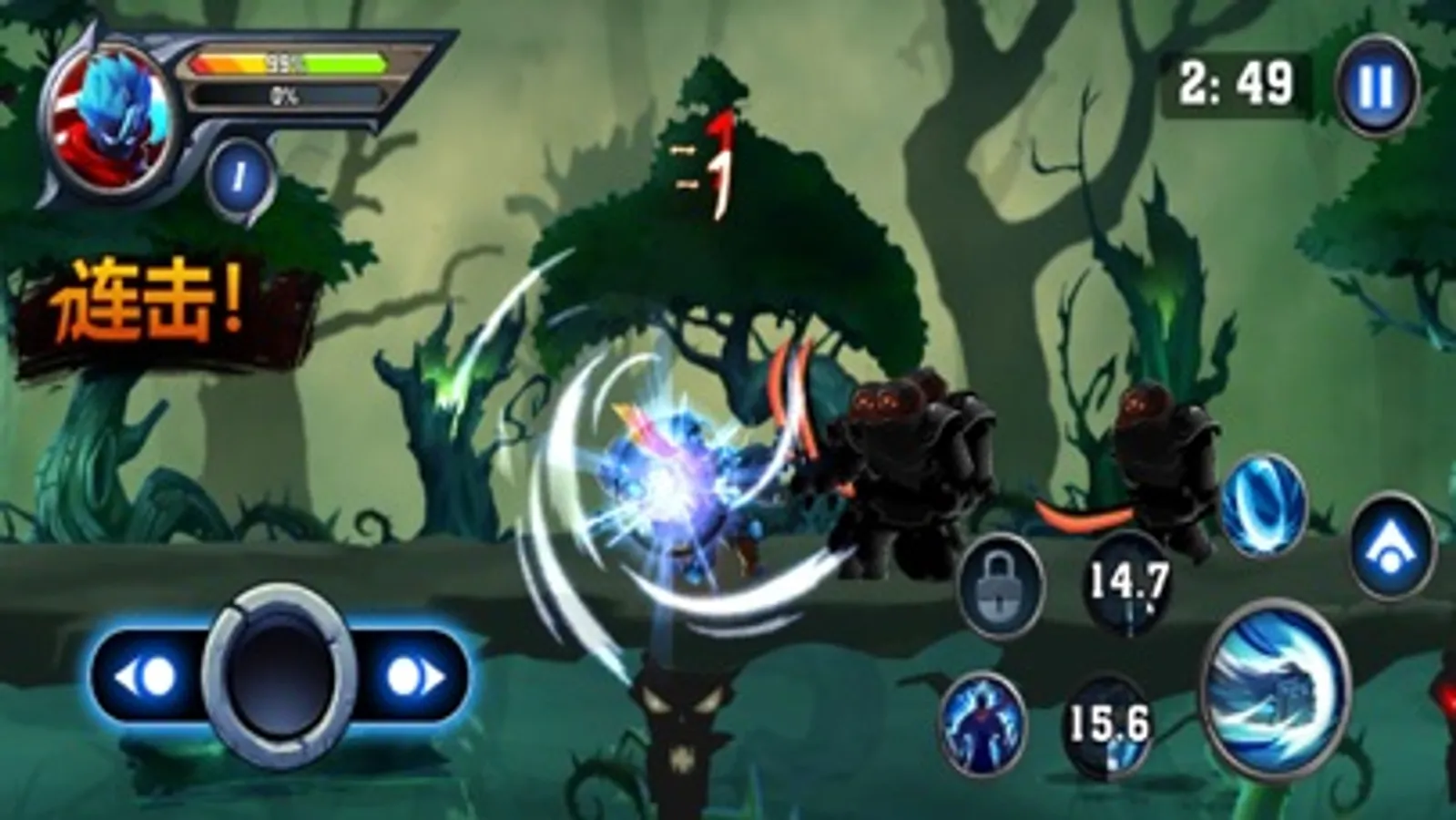 2、每个关卡都有不同的隐藏功夫技能,你的暗影敌人越来越危险。记得升级你的英雄技能,并确保他们学习足够的技能进行新的战斗。在你的英雄达到一定程度后,可以解锁宝贵的技能。一些神秘的忍者技能龙卷风跳跃也可能在激烈的战斗中有用。