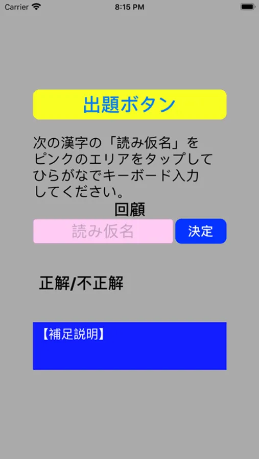 5)”不正解”の場合は、「補足説明」の欄に、漢字の正しい読み仮名が表示されます。