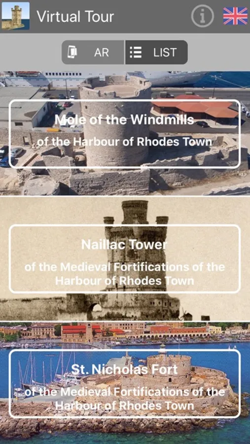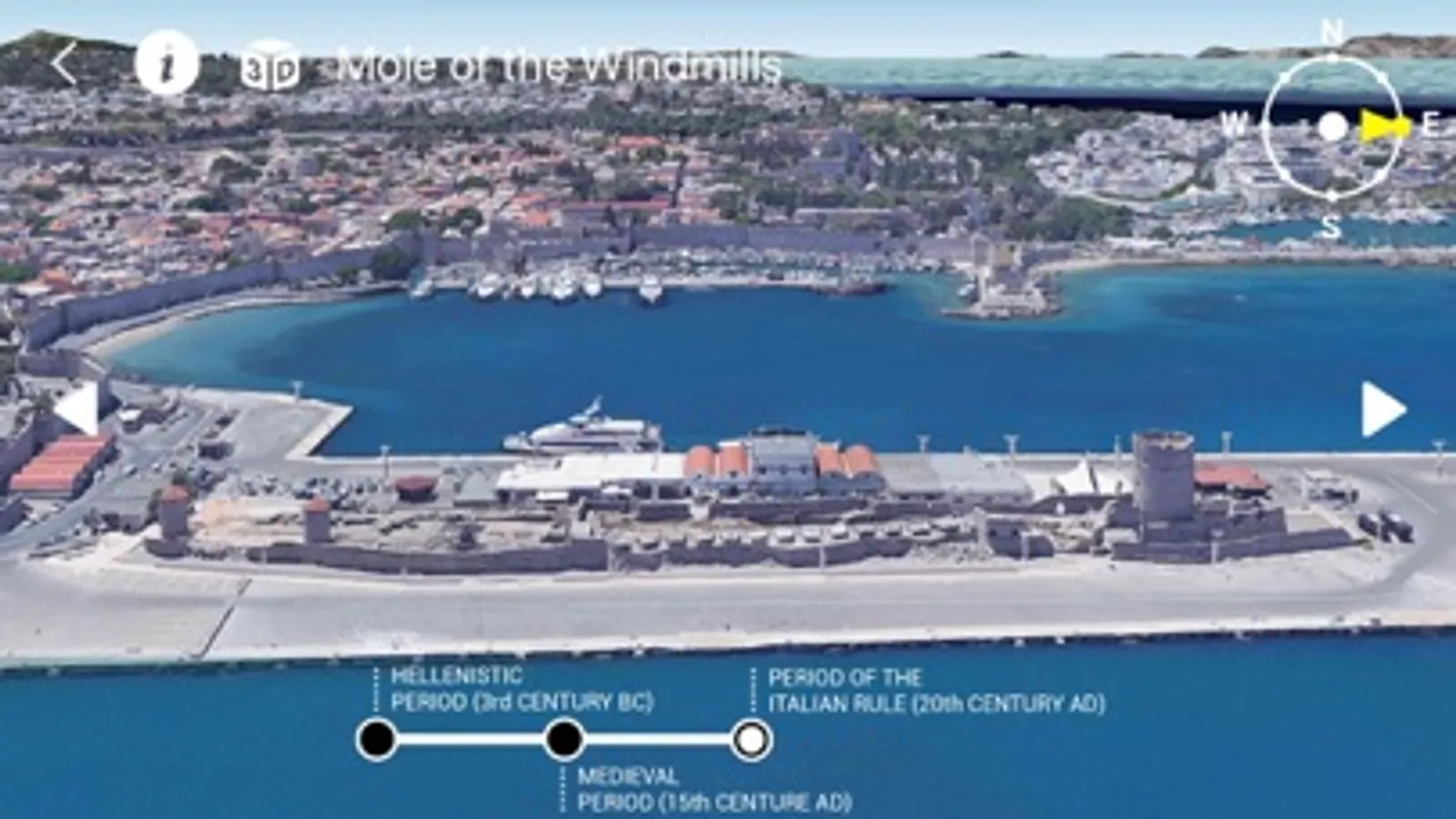 The production of digital application is part of the action "The Timeless Outdoor Museum of Molos of Mylos at the tourist harbor of Rhodes "within the framework of the European Cultural Heritage Year 2018. Implementation of the application is the Ministry of Culture and the Ministry of Culture Sports - Service of Modern Monuments and Technical Works Dodecanese.