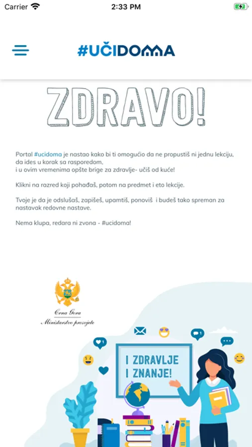 Aplikacija #učidoma omogućava učenicima osnovnih i srednjih škola u Crnoj Gori da prate video lekcije predmeta u okviru razreda koji pohađaju, kao i da budu u toku sa rasporedom lekcija, kako bi u vremenima opšte brige za zdravlje mogli da uče od kuće.
