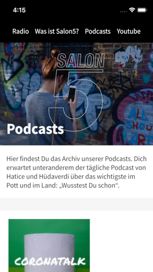 Salon5 ist offen für Jugendliche. Egal wo sie herkommen, was sie denken oder glauben. Wir wollen ihnen auf Augenhöhe begegnen, ihnen die Methoden beibringen, mit denen sie sich wirksam äußern können; wir wollen ihnen helfen, eine Stimme zu finden – und das verbinden wir mit Spaß an der Arbeit. Salon5 ist ein Webradio und ein Podcast-Sender. Salon 5 steht jedem offen.