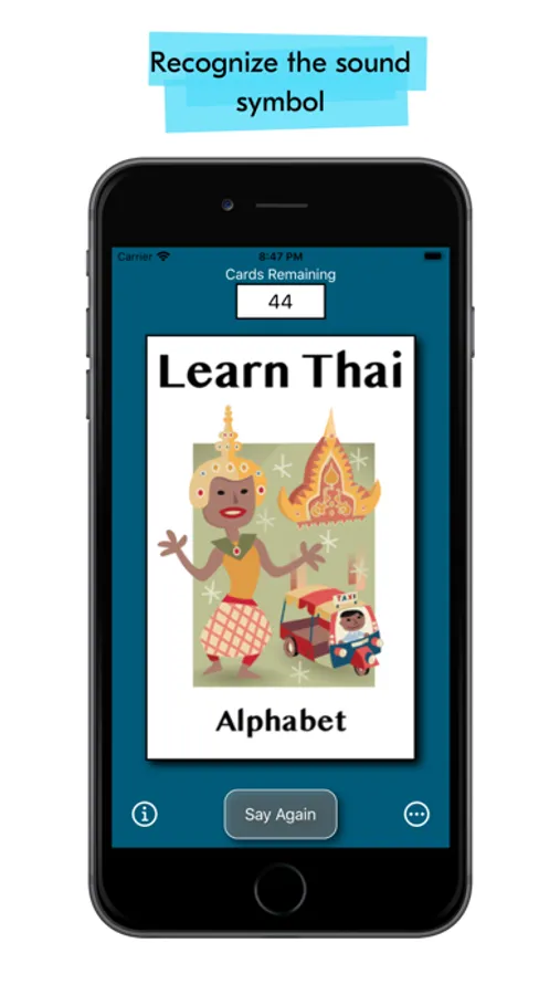 A simple app that teaches you the Thai Alphabet by using repetition and a native Thai speaker.