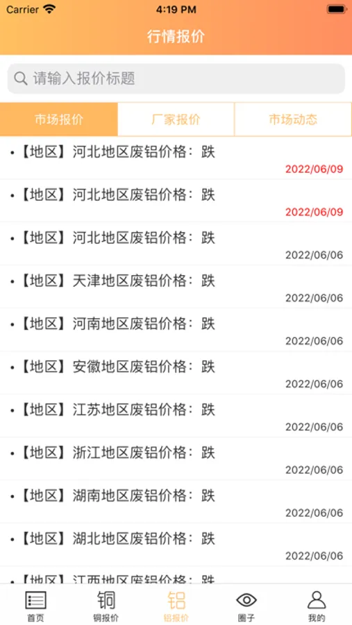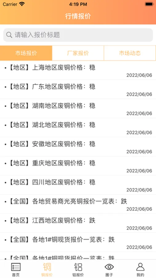 详情:我正在铜铝之家看最新的行情信息。铜铝实时报价,供求信息,每日期货咨询,行业相关话题,一应俱全,铜铝行业老板快来加入吧!