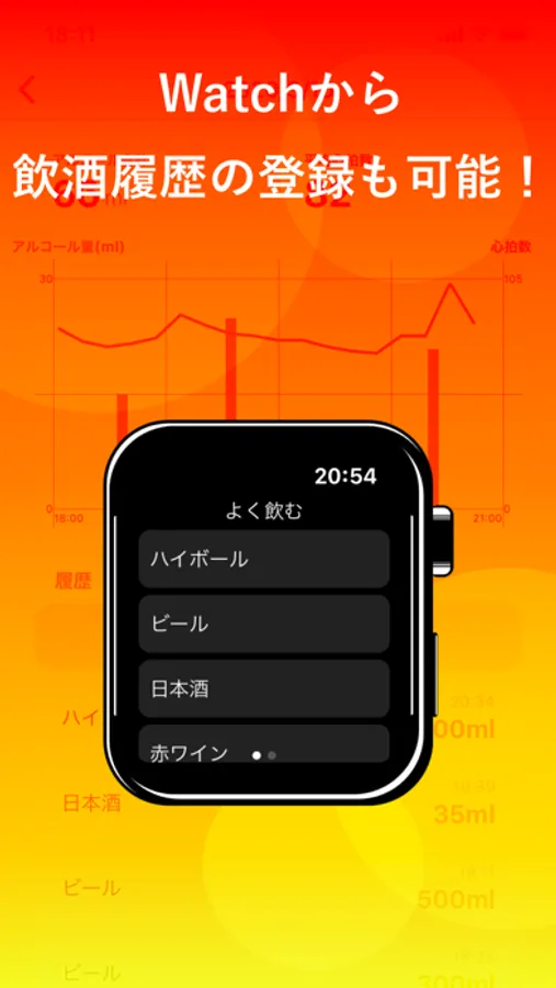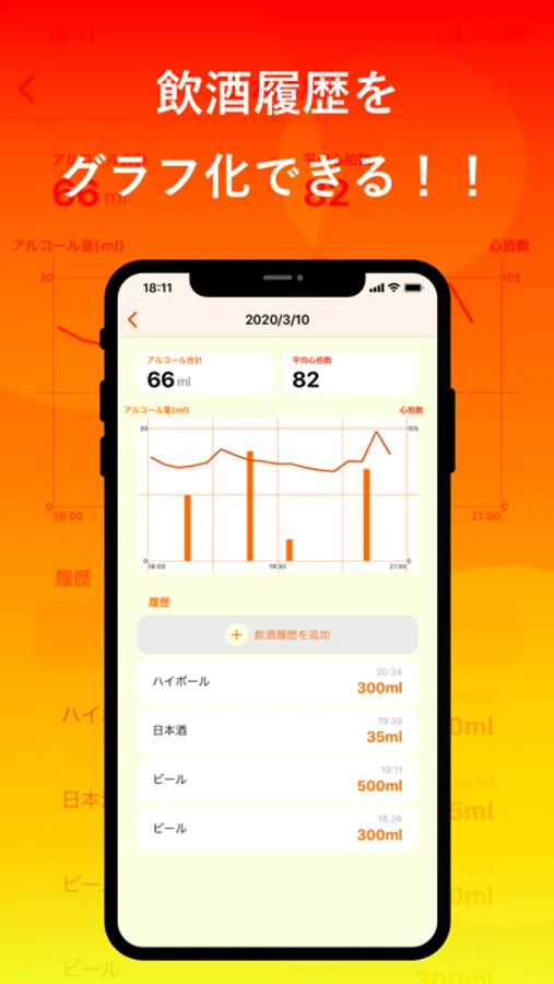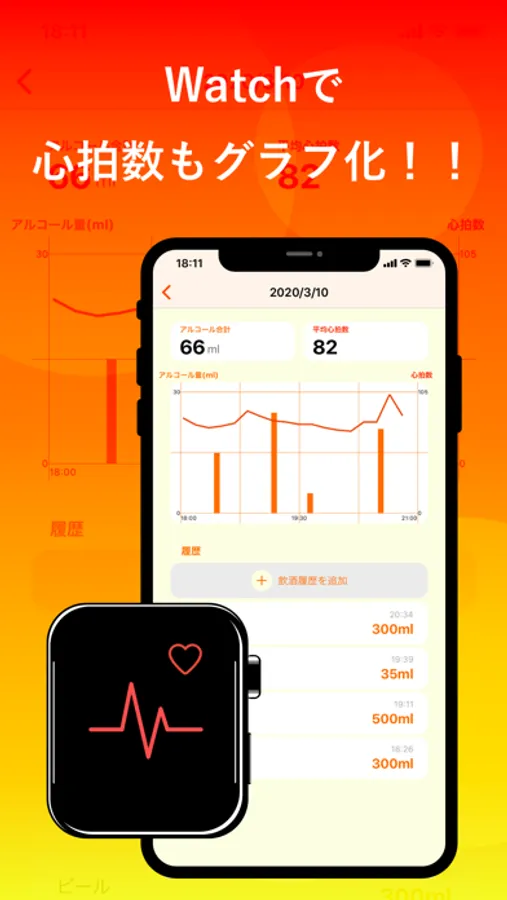 ・飲酒時の心拍数をグラフ化(※Apple Watchが必要)