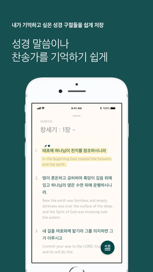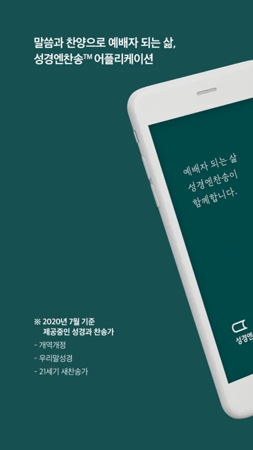 '일상에 예배를 더하는 도구'로서 기획된 성경엔찬송™은 사용자가 말씀과 찬양에 온전히 집중할 수 있는 새로운 모바일 사용 경험을 제안드립니다.