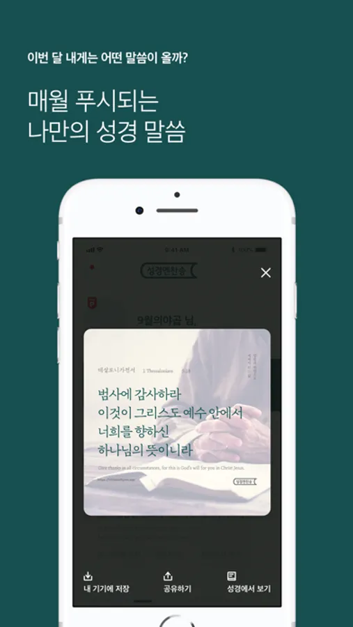 - 매월 푸시되는 성경 말씀 카드를 통해 말씀 묵상을 하고 싶으신 분.